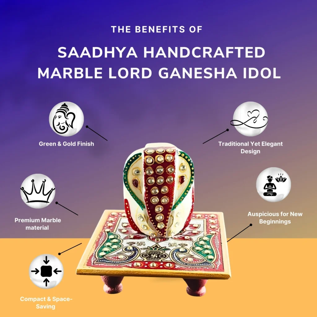 ✨ Key Features – Saadhya Handcrafted Marble Lord Ganesha Idol